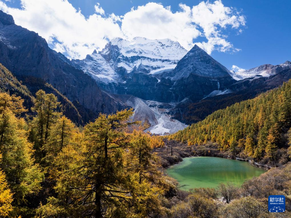 仙乃日雪山下的卓玛湖泻湖隐藏在色彩缤纷的森林中(10月26日摄,无人机拍摄)。如今,位于四川省甘孜藏族自治州的稻城亚丁风景区已进入最佳观赏季节。稻城亚丁风景区主要由“仙乃日、央迈勇、沙诺多吉”三座雪山及周边河流、湖泊、高山草甸组成。它以其独特的原生态环境和雄伟、独特、秀丽、秀美的自然风光而闻名中外。稻城亚丁风景区是国家5A级旅游景区、国家级亚丁自然保护区。 2003年7月,经联合国教科文组织批准建立亚丁世界生物圈保护区。新华社记者 蒋宏景 摄